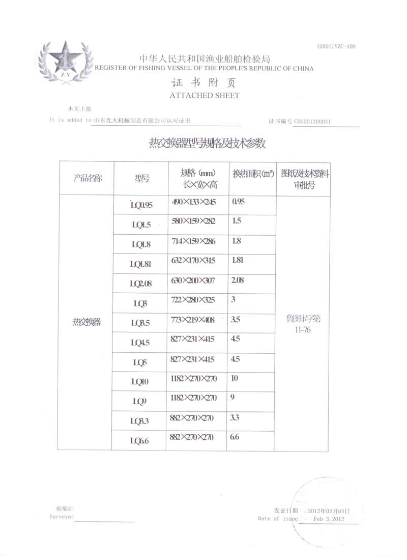热交换器-船用产品型式认可证书